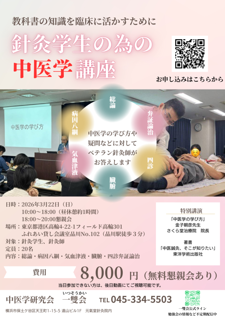 16:00〜17:30 針灸の技術論 講師:新村先生